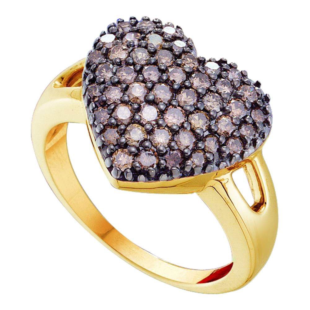 REF-56F4N - SKU: GD51726 ---- Round Brown Diamond Heart Cluster Ring 1.00 Cttw 14kt Yellow Gold