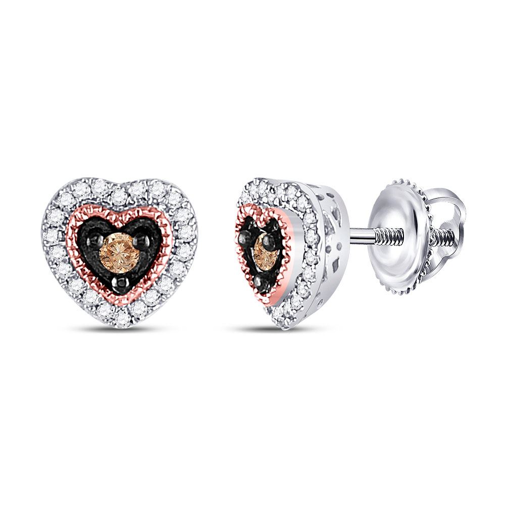 REF-24H5W - SKU: GD96655 ---- Round Brown Diamond Heart Earrings 1/5 Cttw 10kt Two-tone Gold