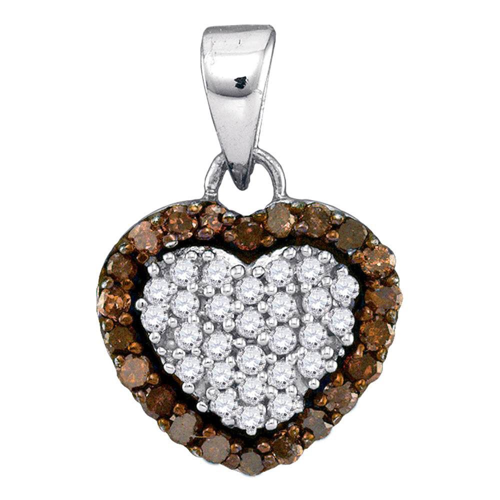REF-13H6W - SKU: GD88645 ---- Round Brown Diamond Heart Frame Pendant 1/3 Cttw 10kt White Gold