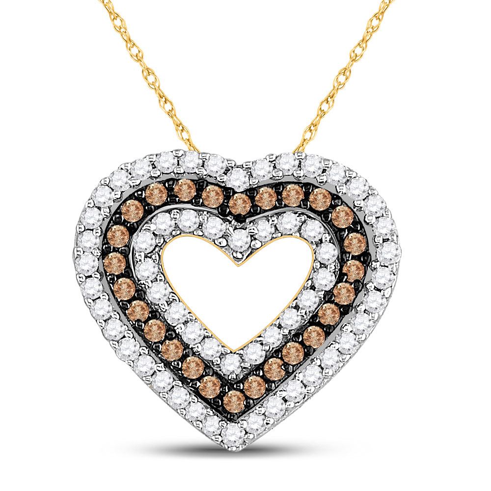 REF-54Y5X - SKU: GD51618 ---- Round Brown Diamond Heart Outline Pendant 3/4 Cttw 14kt Yellow Gold