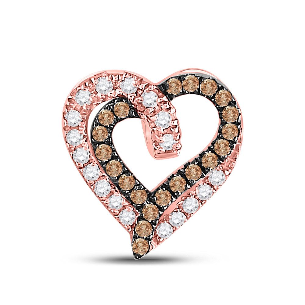 10kt Rose Gold Womens Round Brown Diamond Heart Pendant 1/3 Cttw.