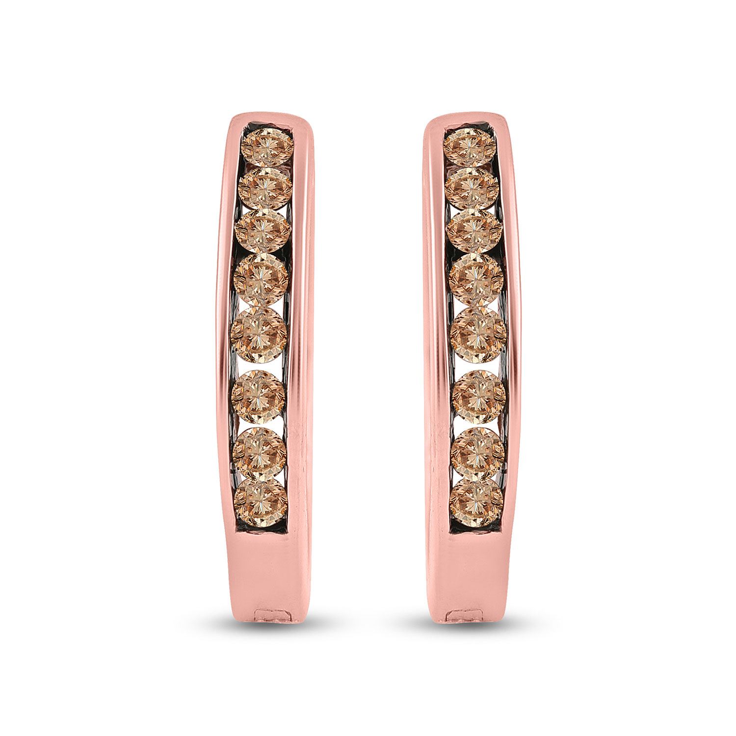 Round Brown Diamond Hoop Earrings 1/4 Cttw 14KT Rose Gold