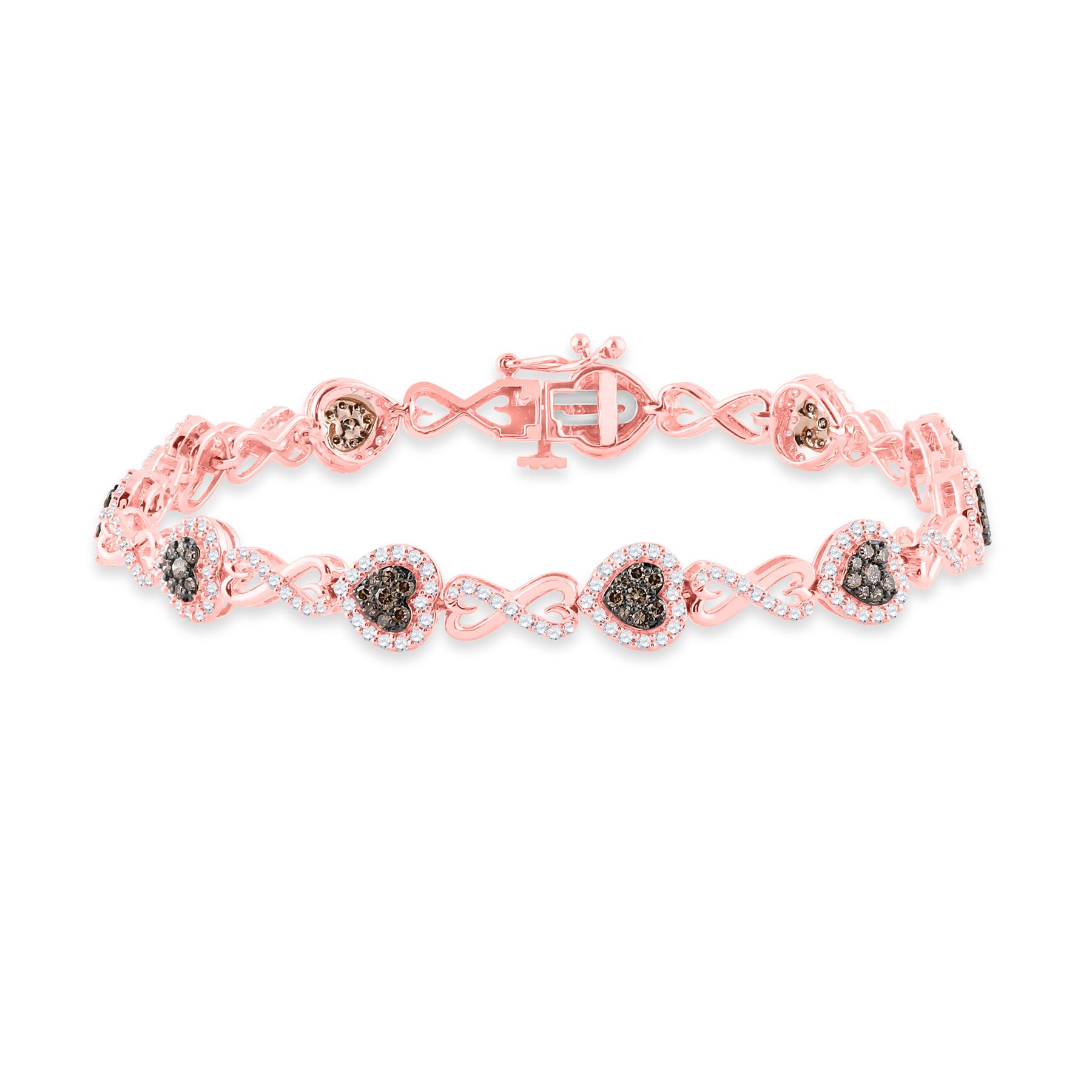 Round Brown Diamond Infinity Heart Bracelet 2 Cttw 10KT Rose Gold