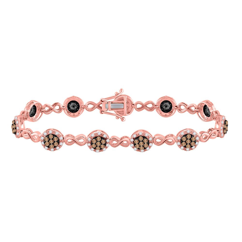 10kt Rose Gold Womens Round Brown Diamond Infinity Link Bracelet 2-1/5 Cttw.