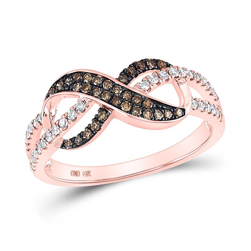 14kt Rose Gold Womens Round Brown Diamond Infinity Ring 1/3 Cttw.