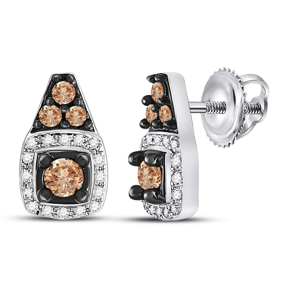REF-17Y3X - SKU: GD90237 ---- Round Brown Diamond Solitaire Screwback Earrings 3/8 Cttw 10kt White Gold