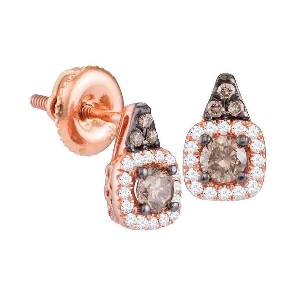 REF-38A2V - SKU: GD110653 ---- Round Brown Diamond Solitaire Square Frame Earrings 3/8 Cttw 14kt Rose Gold