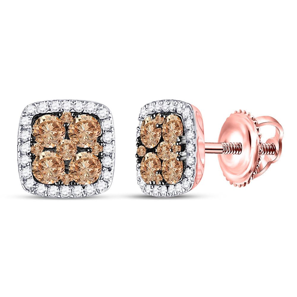 14kt Rose Gold Womens Round Brown Diamond Square Cluster Earrings 1 Cttw.