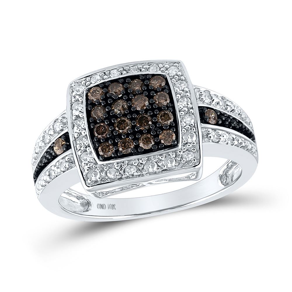 Round Brown Diamond Square Cluster Ring 1/2 Cttw 10KT White Gold