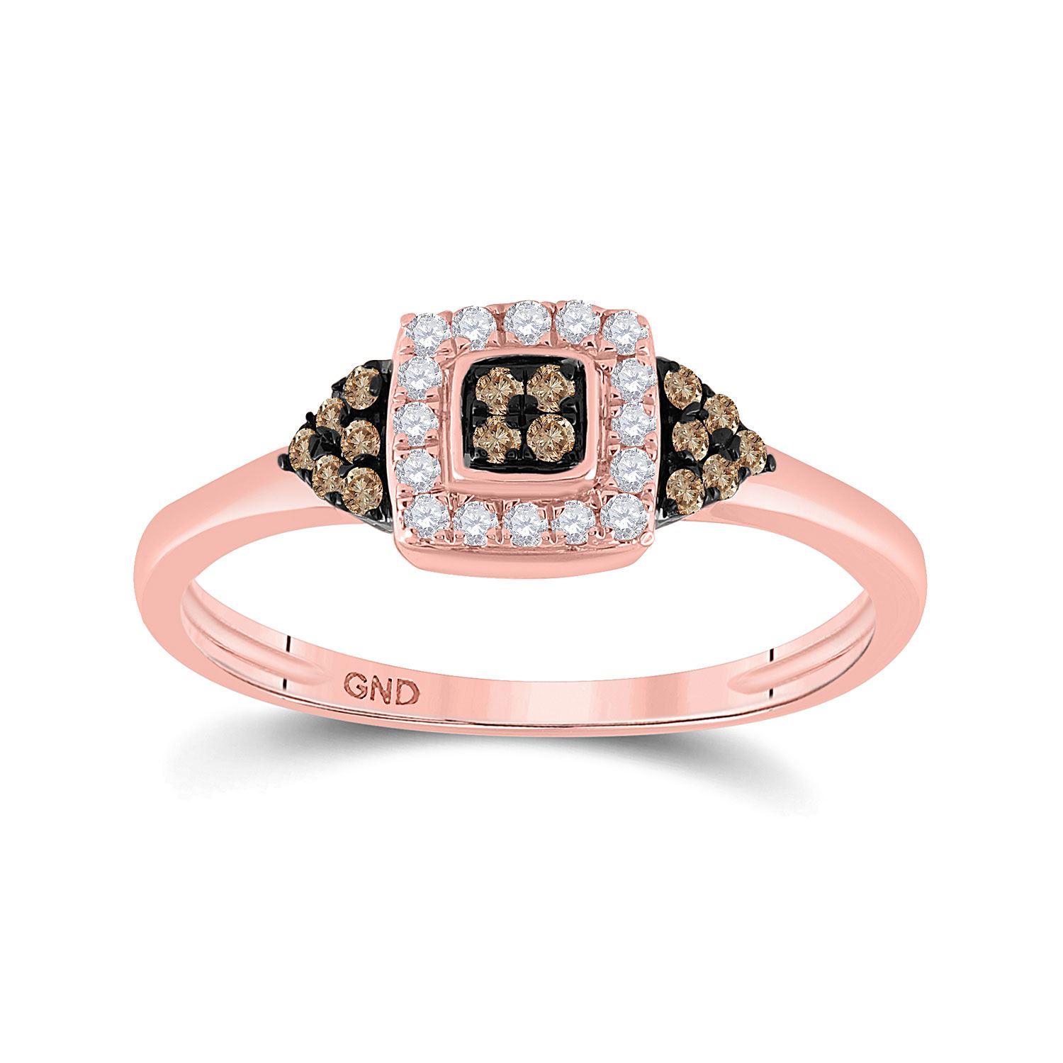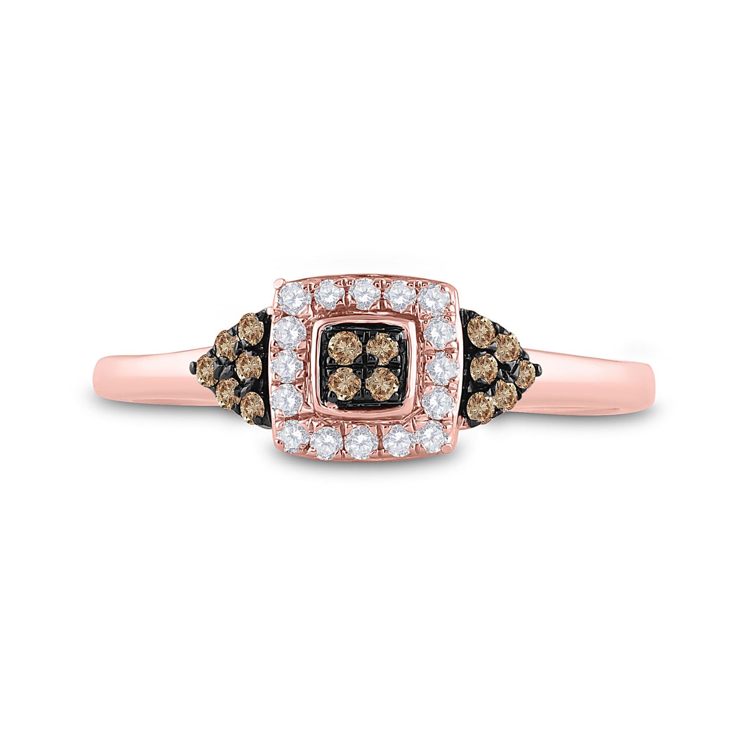 Round Brown Diamond Square Cluster Ring 1/5 Cttw 10KT Rose Gold