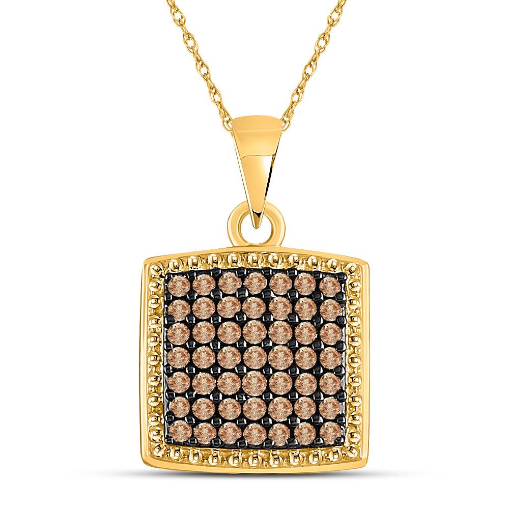 10kt Yellow Gold Womens Round Brown Diamond Square Pendant 1/2 Cttw.