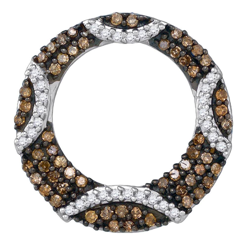 REF-17W3H - SKU: GD87001 ---- Round Brown Diamond Stripe Circle Pendant 3/8 Cttw 10kt White Gold