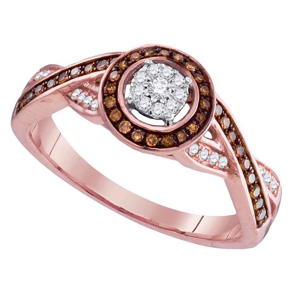 Round Brown Diamond Twist Cluster Ring 1/4 Cttw 10KT Rose Gold