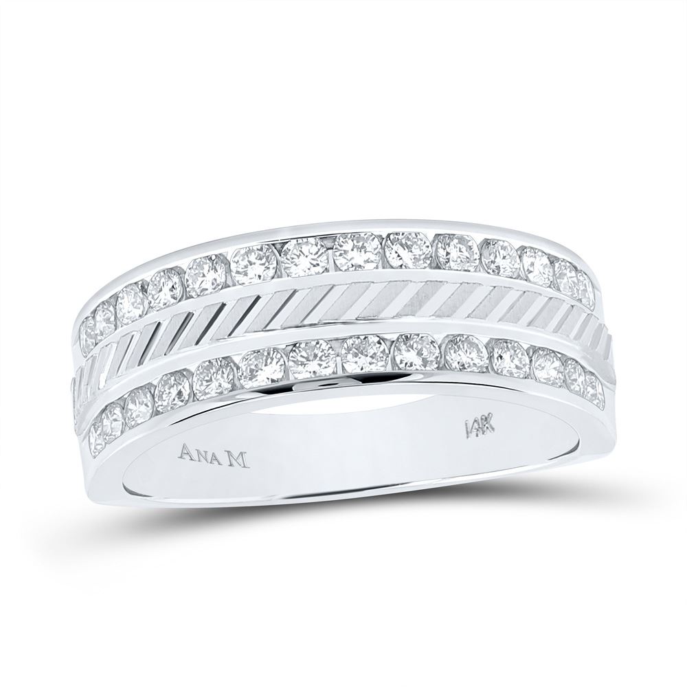 14kt White Gold Mens Round Channel-set Diamond Double Row Grecco Wedding Band Ring 1 Cttw.
