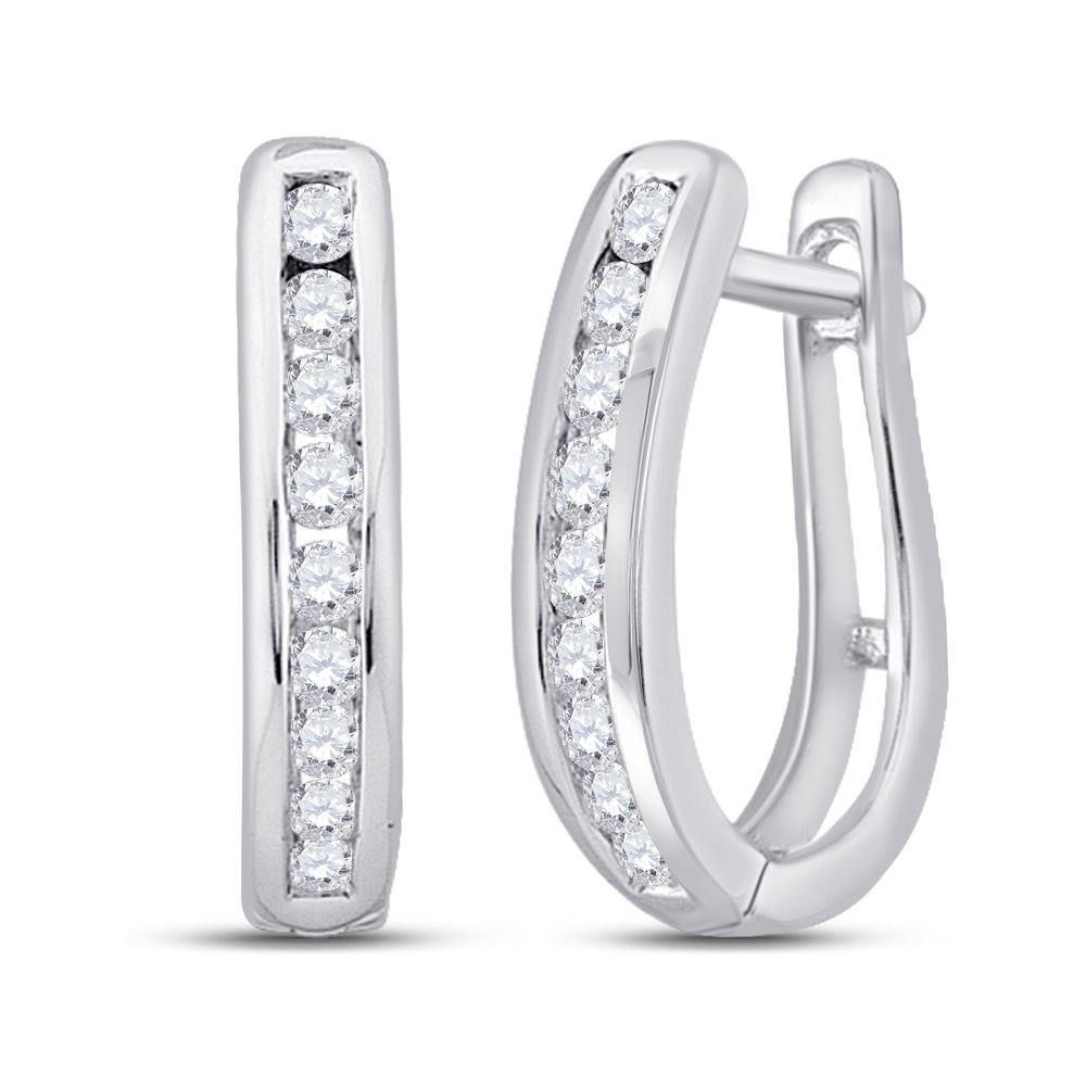 Round Channel-set Diamond Oblong Hoop Earrings 1/4 Cttw 10KT White Gold