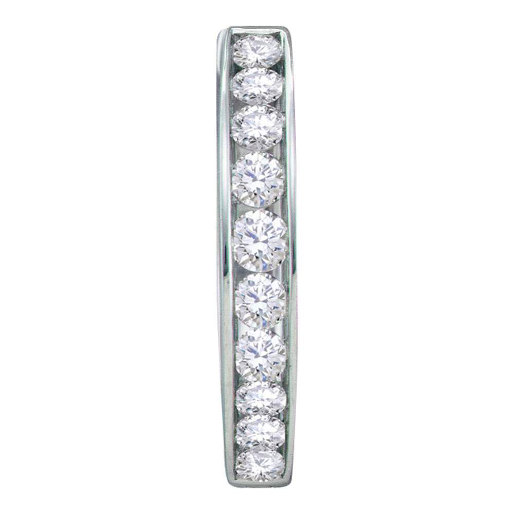 REF-112G7M - SKU: GD46609 ---- Round Channel-set Diamond Single Row Hoop Earrings 1-1/3 Cttw 14kt White Gold