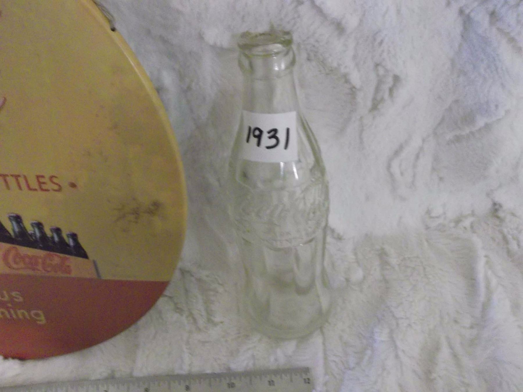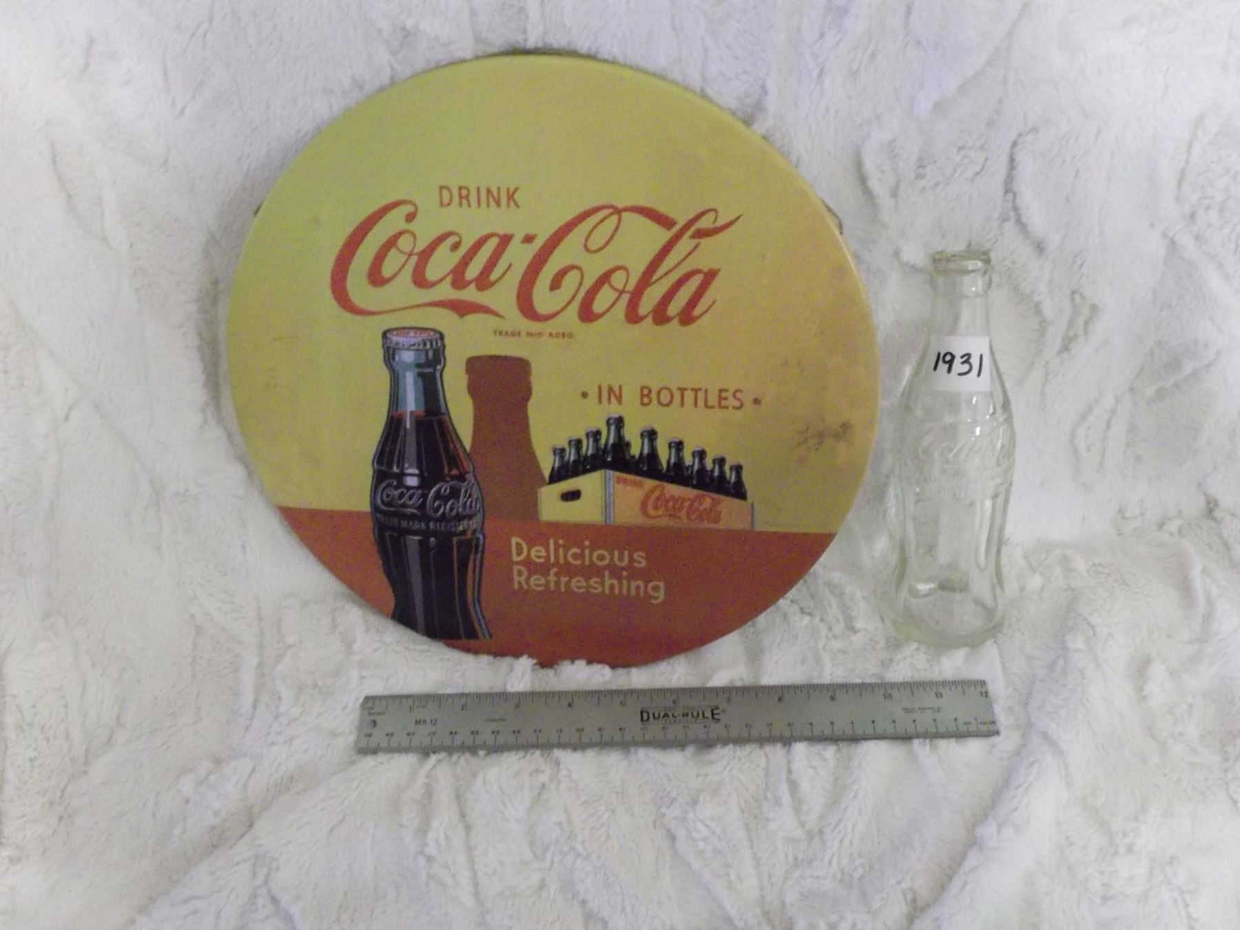 Round Coke Tin Sign (Reproduction) W/ 1931 Bottle