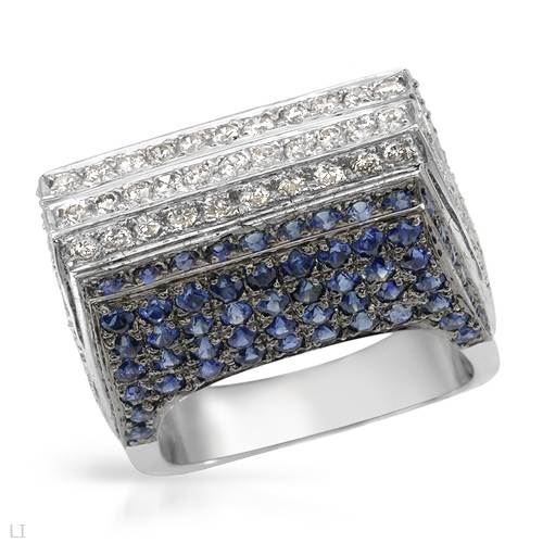 Round-cut Prong-Set Blue Sapphire and Diamond Ring in 14K White Gold | 156937 6.5 Grams, featuring 1.2 Sapphire ct 70 2.57 ct 100 ct 14 ct