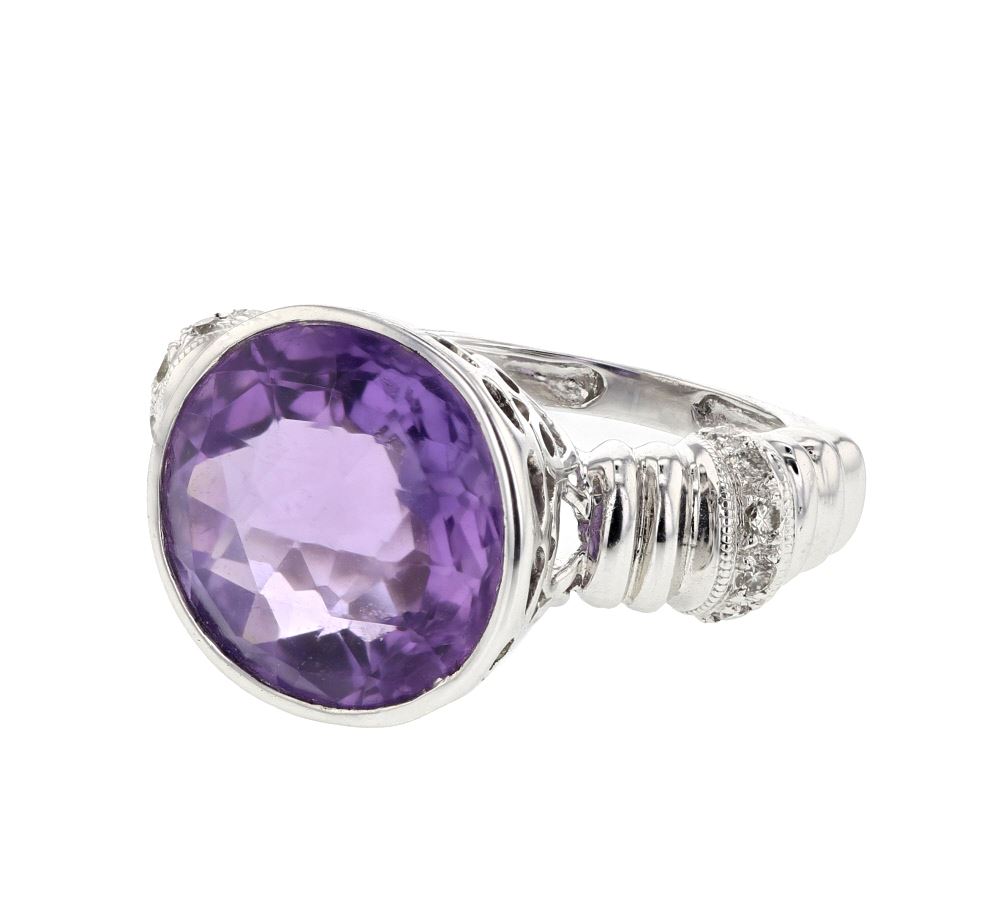 Round-cut Purple Amethyst Ring with Diamonds in 14K White Gold | 267398 6.5 Grams, featuring 8.26 White Diamond Round ct 1 0.2 ct 12 ct 14 ct
