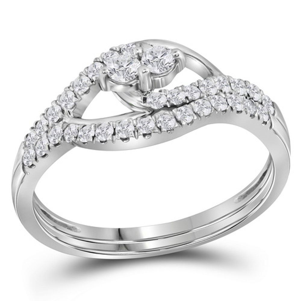 REF-33M9H ---- Round Diamond 2-Stone Bridal Wedding Ring Band Set 1/2 Cttw 10kt White Gold