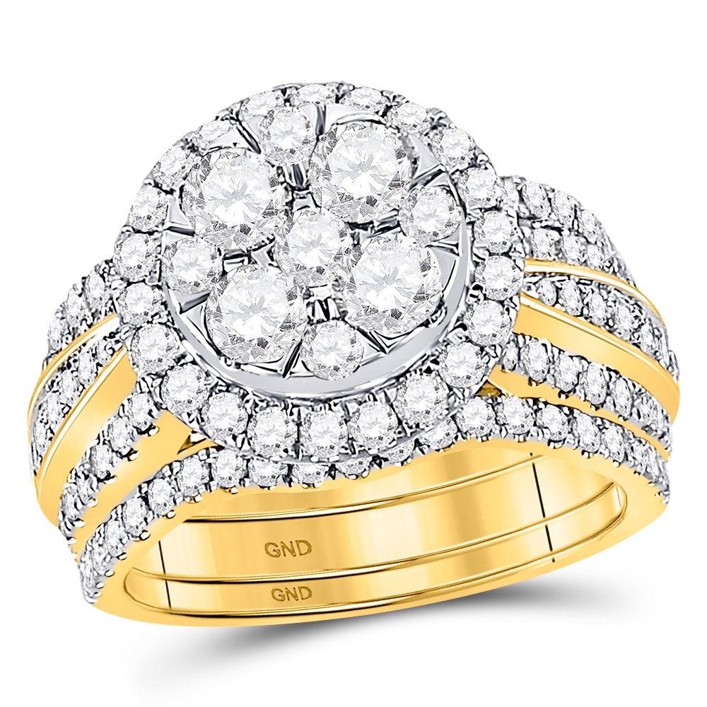 14kt Yellow Gold Round Diamond 3-Piece Bridal Wedding Ring Band Set 2-1/2 Cttw