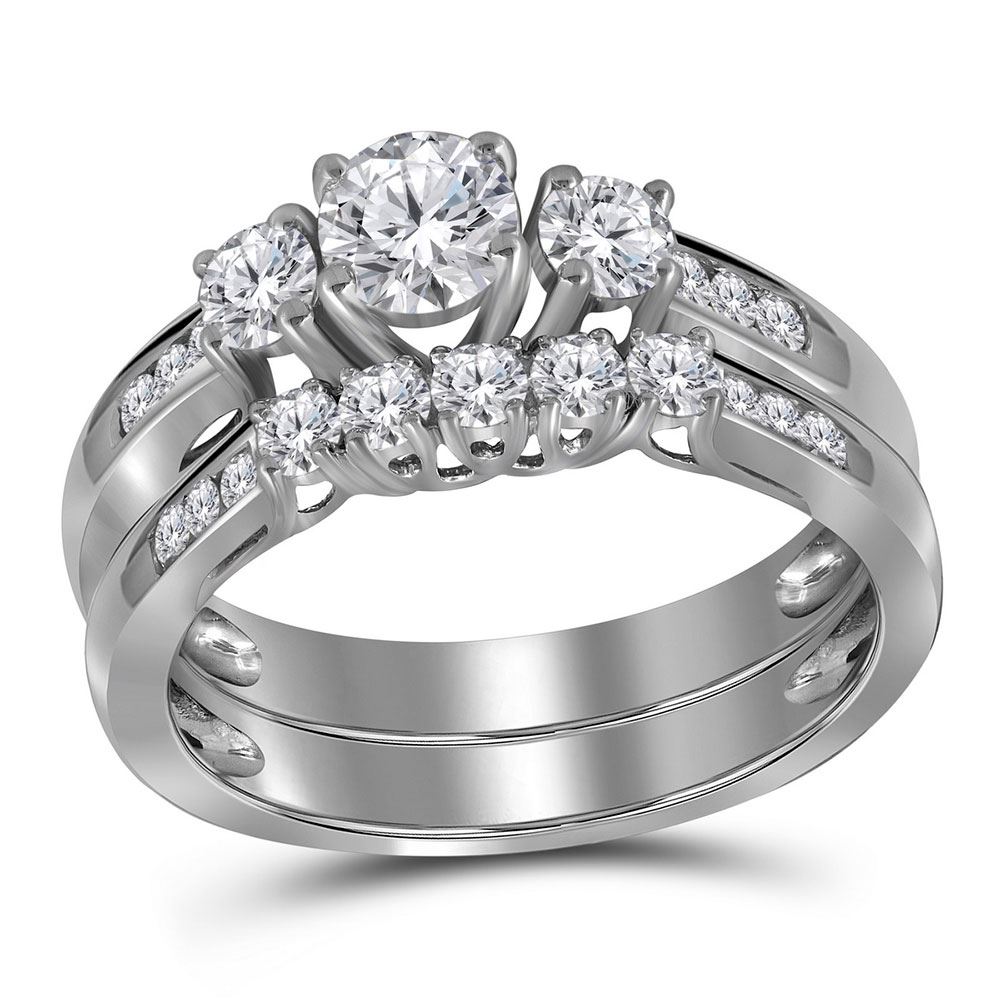 REF-127X9A ---- Round Diamond 3-Stone Bridal Wedding Ring Band Set 1 Cttw 14kt White Gold