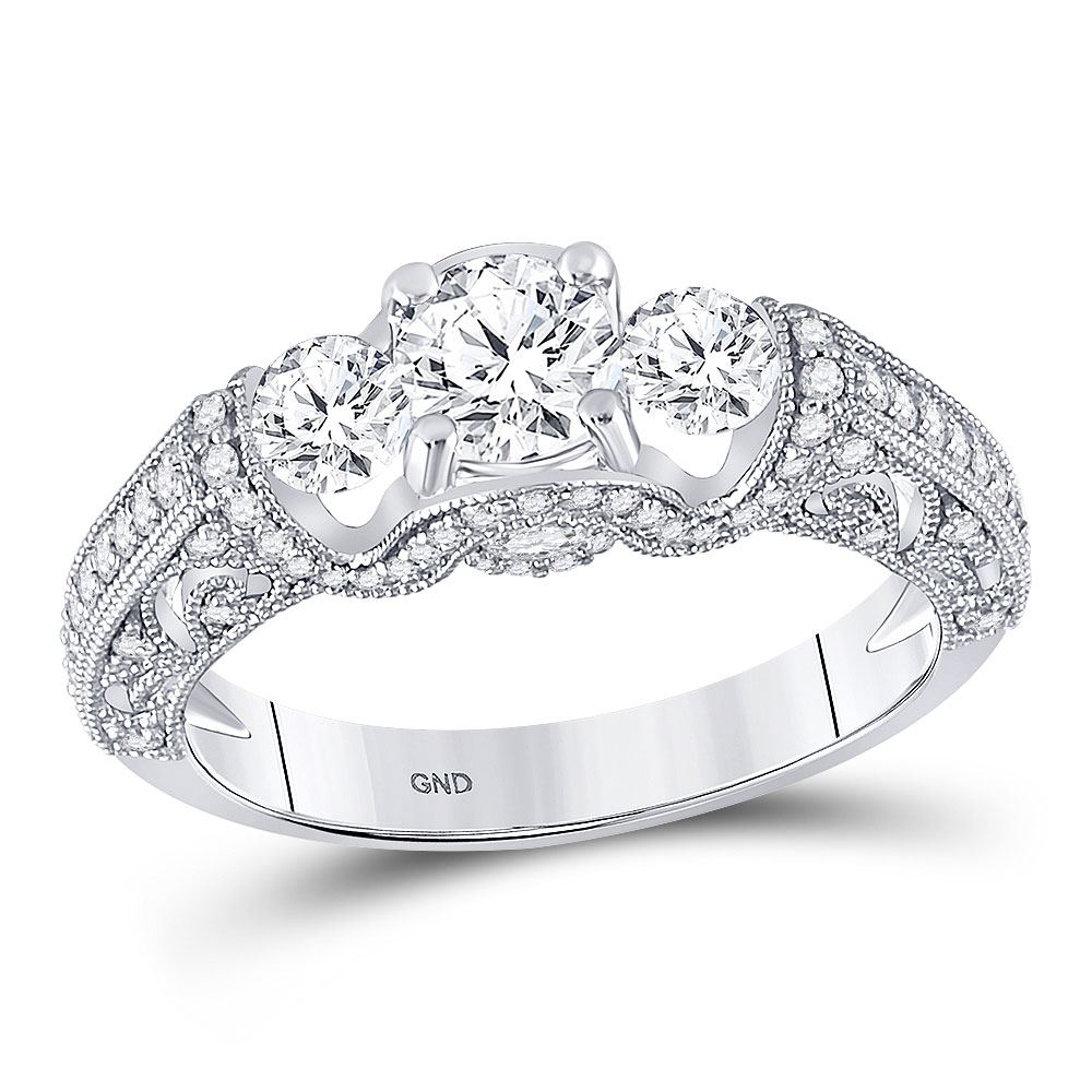14kt White Gold Round Diamond 3-stone Bridal Wedding Engagement Ring 1-1/2 CttwItem Number: GND-148928Gemstone Details<span