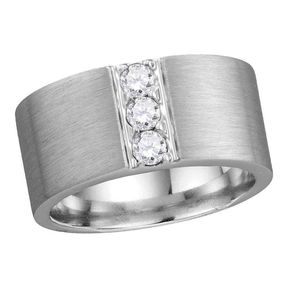 14kt White Gold Mens Round Diamond 3-stone Matte Wedding Band 1/2 Cttw.