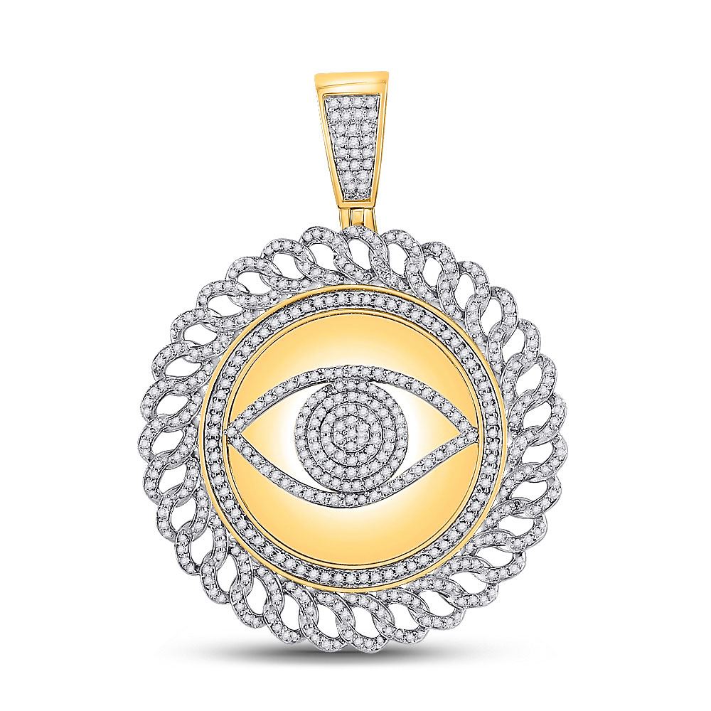 10kt Yellow Gold Mens Round Diamond All Seeing Eye Circle Charm Pendant 1-3/4 Cttw.