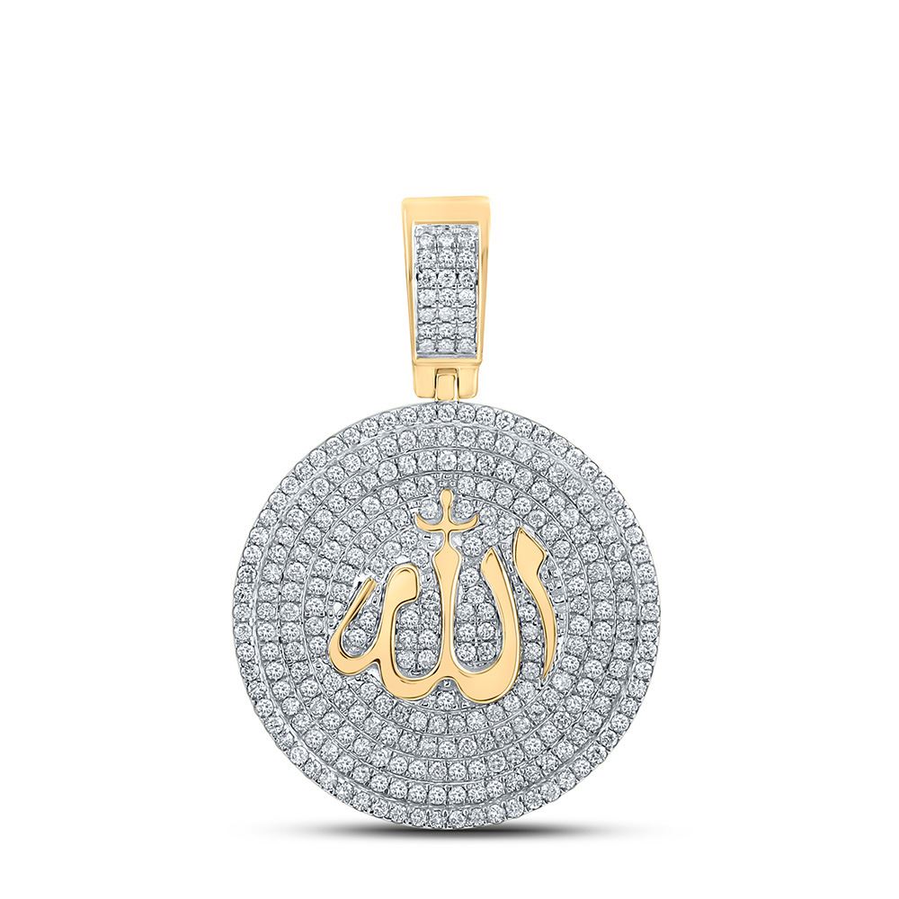 14kt Yellow Gold Mens Round Diamond Allah Islam Circle Charm Pendant 2-3/4 Cttw.