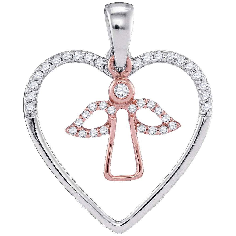 Round Diamond Angel Heart Pendant 1/6 Cttw 10KT Two-tone Gold