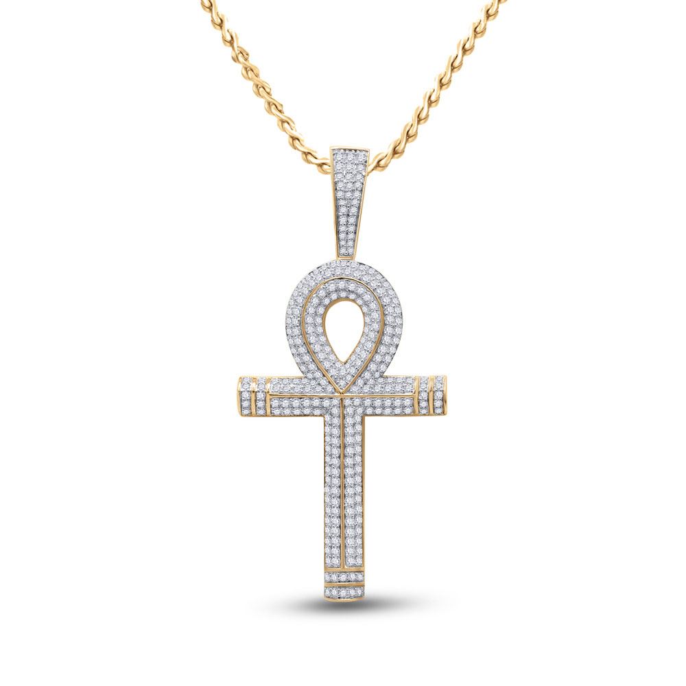10kt Yellow Gold Mens Round Diamond Ankh Cross Charm Pendant 2-1/5 Cttw.