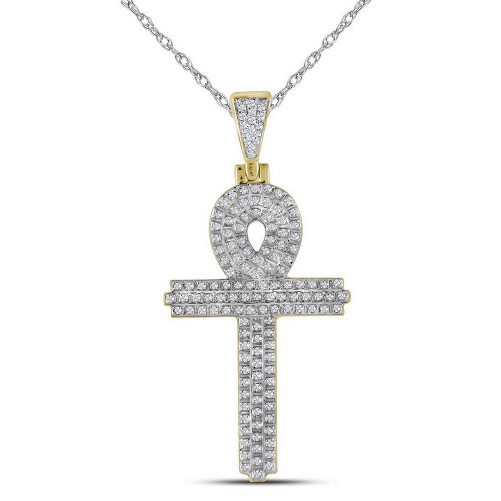 Round Diamond Ankh Cross Religious Charm Pendant 3/8 Cttw 10KT Yellow Gold