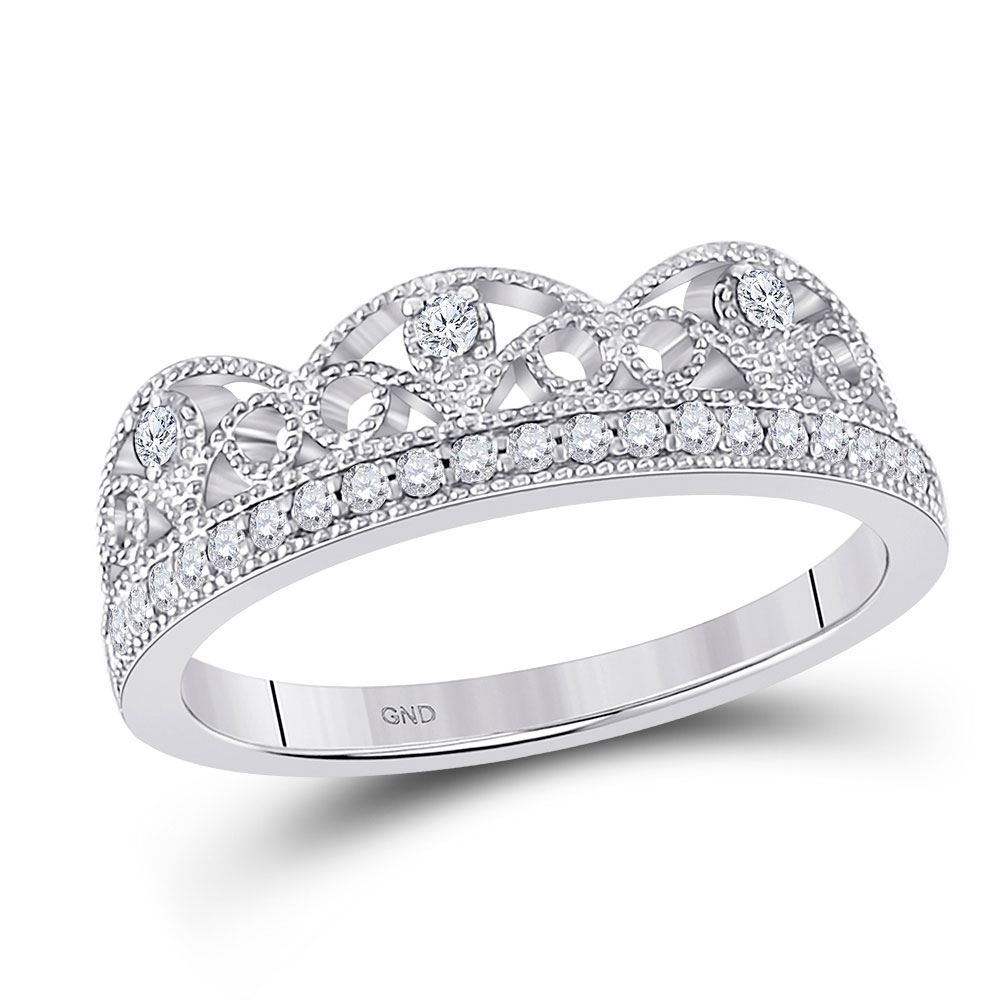 10kt White Gold Womens Round Diamond Band Ring 1/5 Cttw.