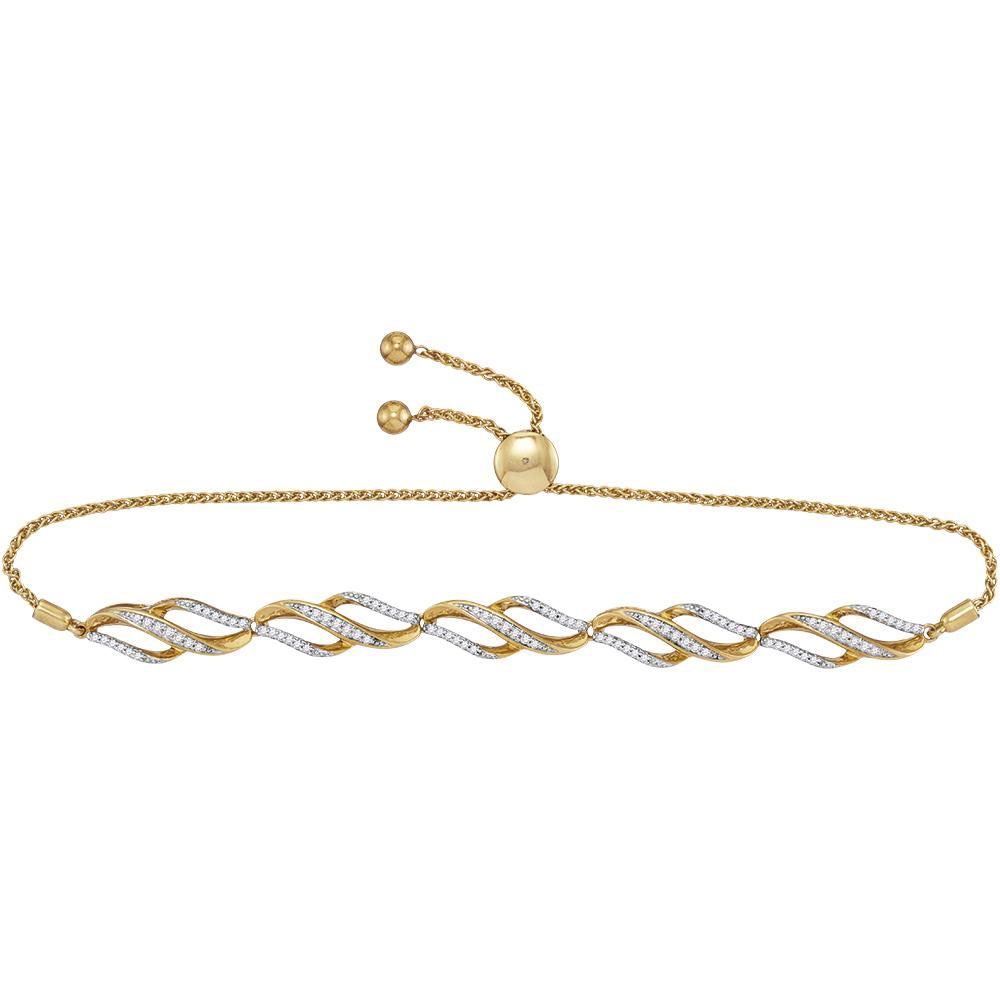 10kt Yellow Gold Womens Round Diamond Bolo Bracelet 1/3 Cttw.