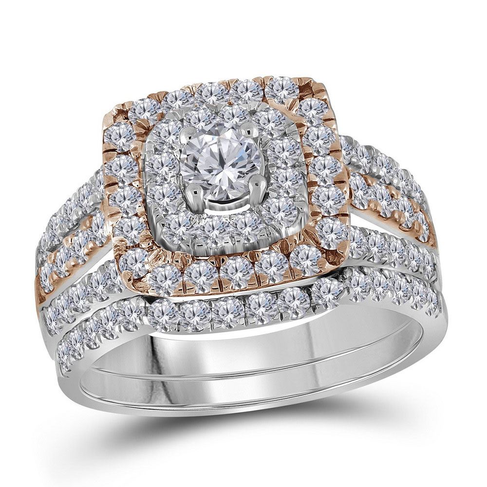 14kt Two-tone Gold Round Diamond Bridal Wedding Ring Band Set 1-1/2 CttwItem Number: GND-113985Gemstone Details<span