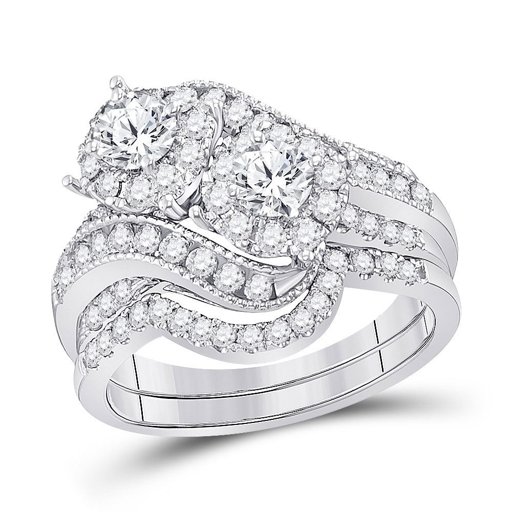 REF-140K9Y ---- Round Diamond Bridal Wedding Ring Band Set 1-1/2 Cttw 14kt White Gold