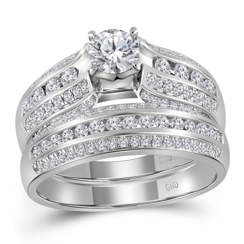 REF-156W5K ---- Round Diamond Bridal Wedding Ring Band Set 1-1/4 Cttw 14kt White Gold