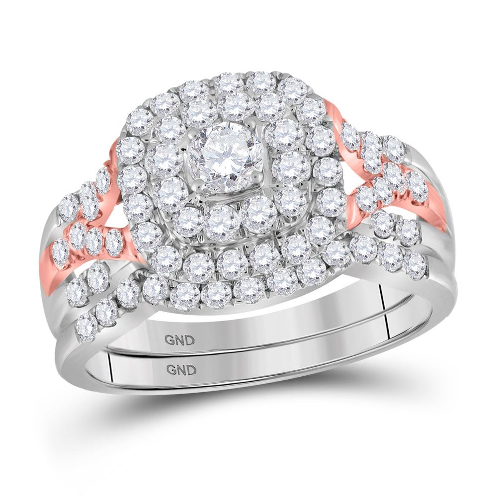 14kt Two-tone Gold Round Diamond Bridal Wedding Ring Band Set 1-1/5 CttwItem Number: GND-113994Gemstone Details<span