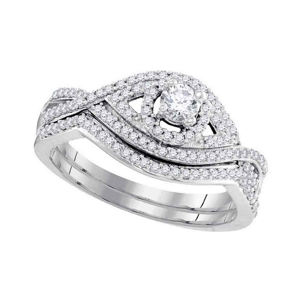 REF-49M5H ---- Round Diamond Bridal Wedding Ring Band Set 1/2 Cttw 10k White Gold
