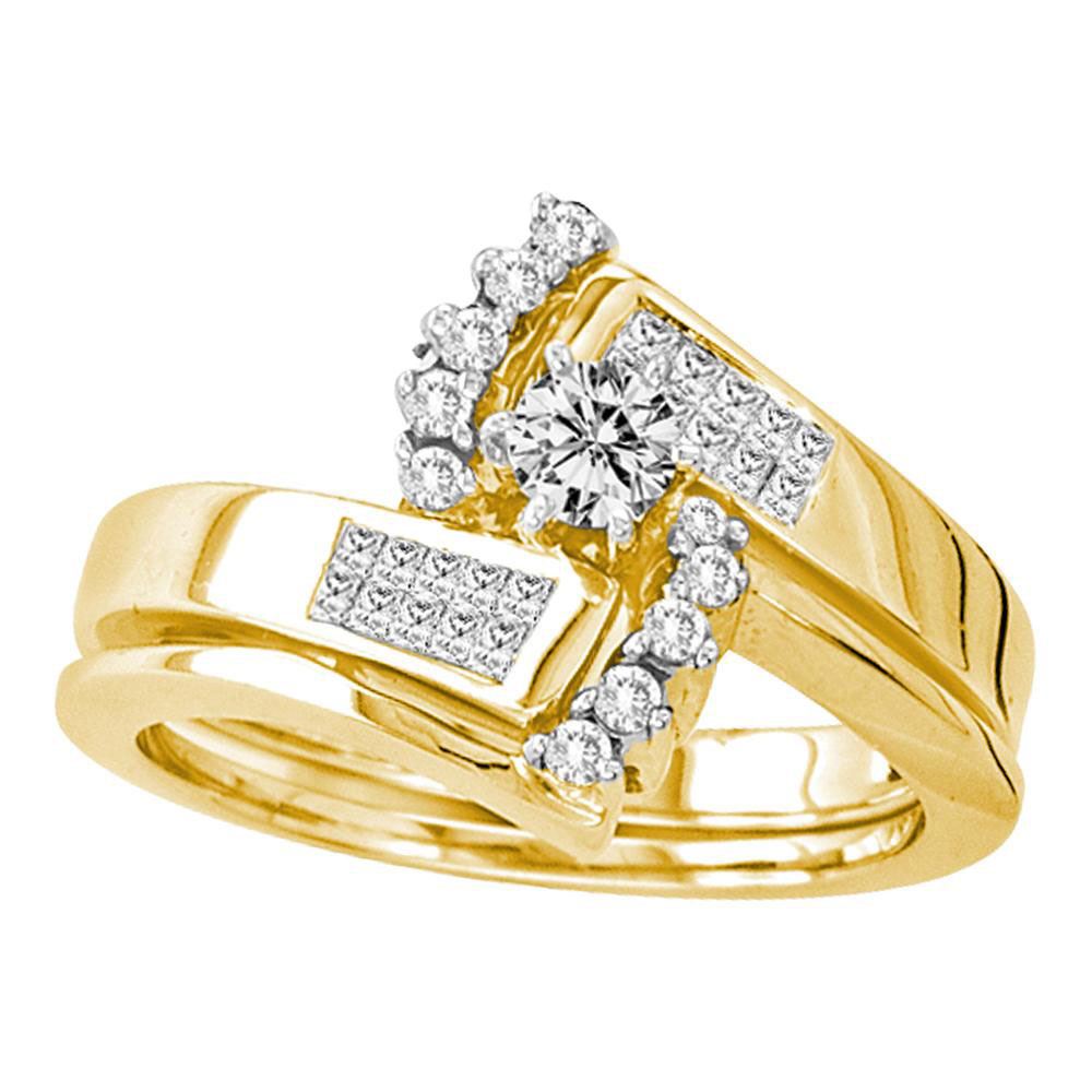 REF-76Y5N ---- Round Diamond Bridal Wedding Ring Band Set 1/2 Cttw 14kt Yellow Gold