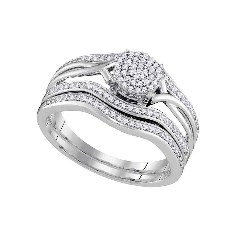 REF-30W9K ---- Round Diamond Bridal Wedding Ring Band Set 1/3 Cttw 10kt White Gold