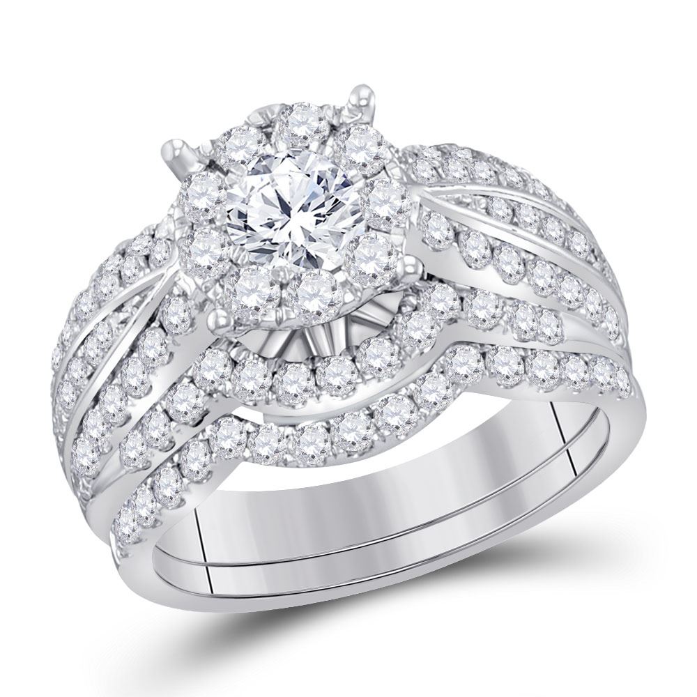 REF-184X9A ---- Round Diamond Bridal Wedding Ring Band Set 1-7/8 Cttw 14kt White Gold