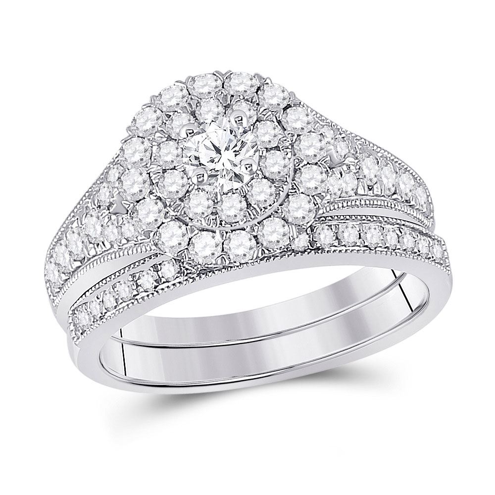 REF-74N9F ---- Round Diamond Bridal Wedding Ring Band Set 1 Cttw 10kt White Gold
