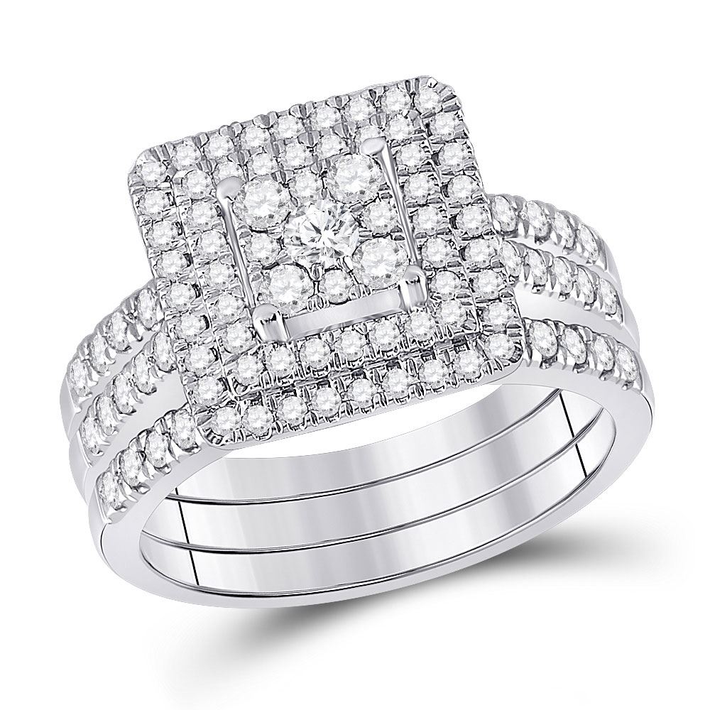REF-76W5K ---- Round Diamond Bridal Wedding Ring Band Set 1 Cttw 10kt White Gold