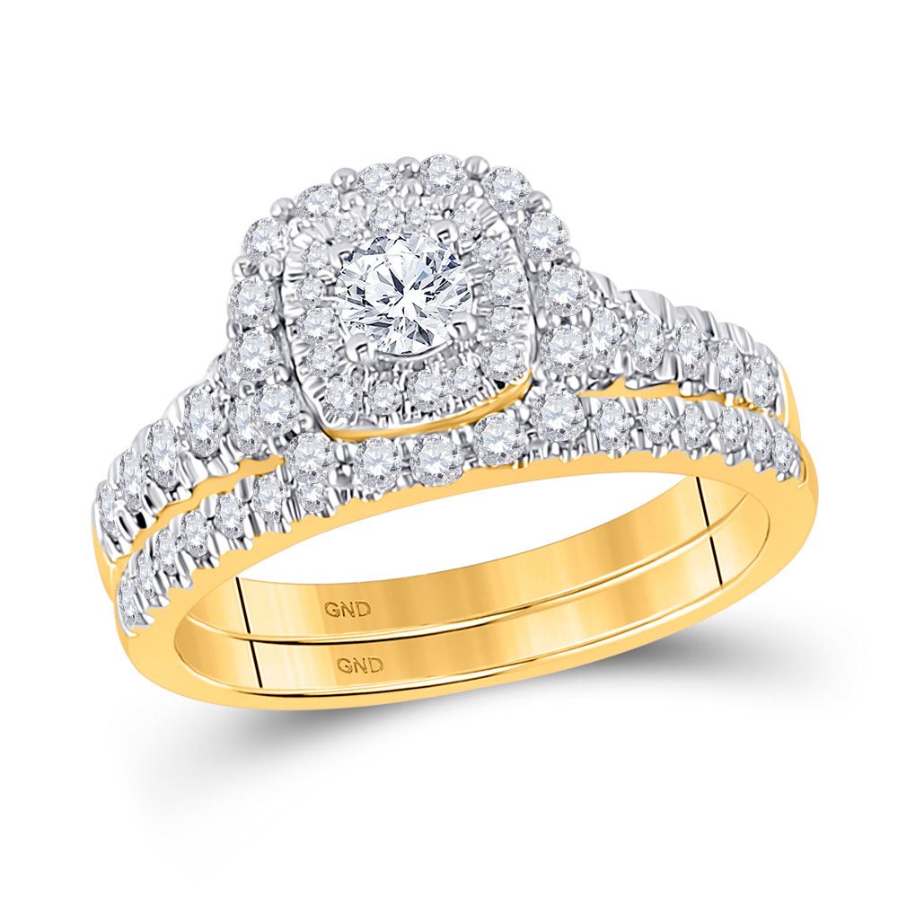 REF-68M5H ---- Round Diamond Bridal Wedding Ring Band Set 1 Cttw 10kt Yellow Gold