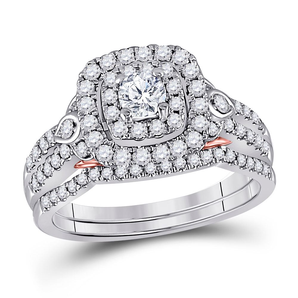 REF-107M9H ---- Round Diamond Bridal Wedding Ring Band Set 1 Cttw 14kt Two-tone Gold