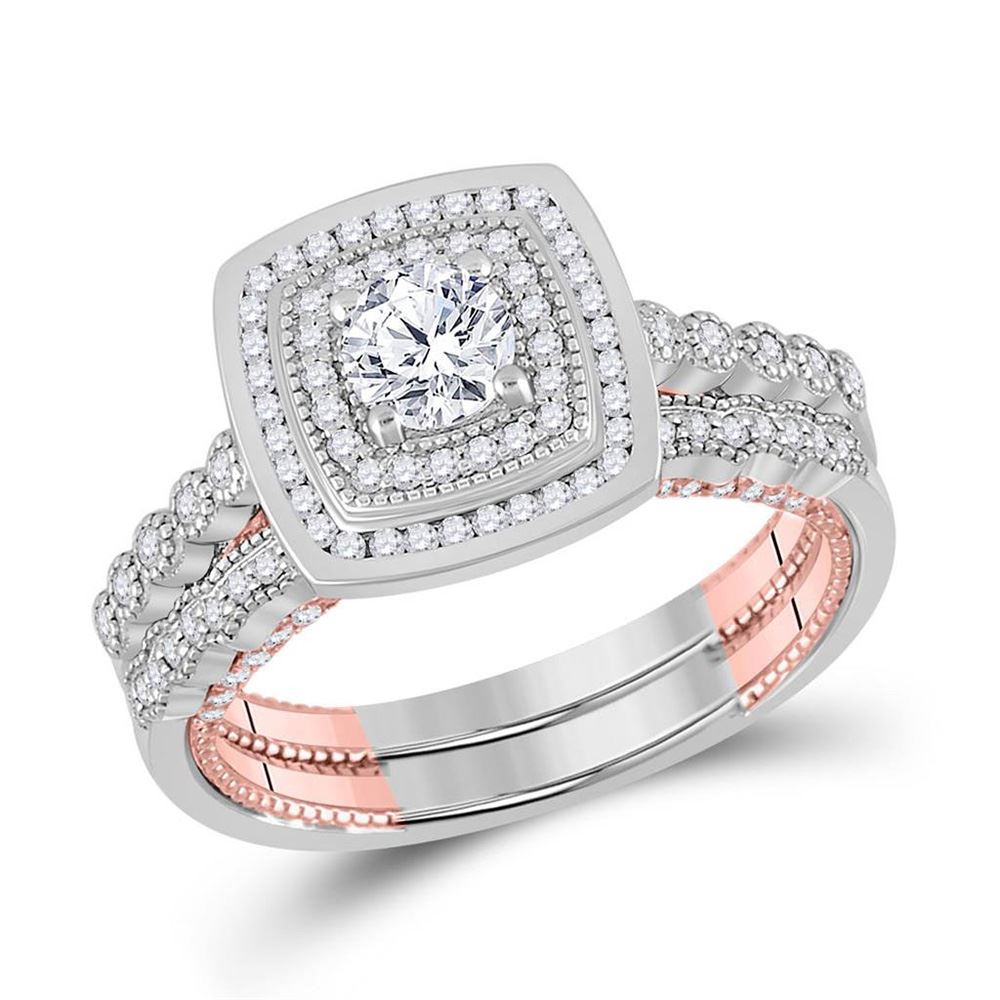 REF-146X9A ---- Round Diamond Bridal Wedding Ring Band Set 1 Cttw 14kt Two-tone Gold