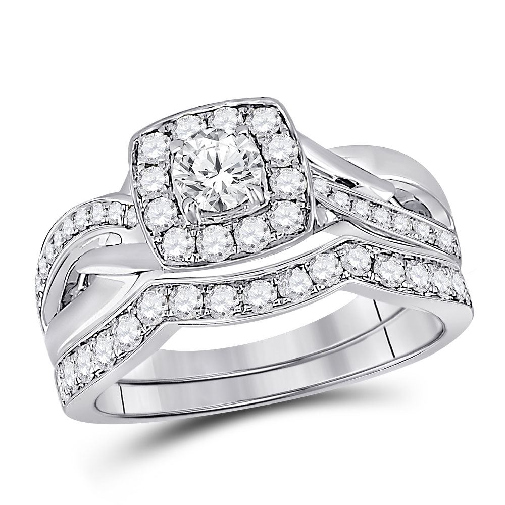 REF-101X5A ---- Round Diamond Bridal Wedding Ring Band Set 1 Cttw 14kt White Gold
