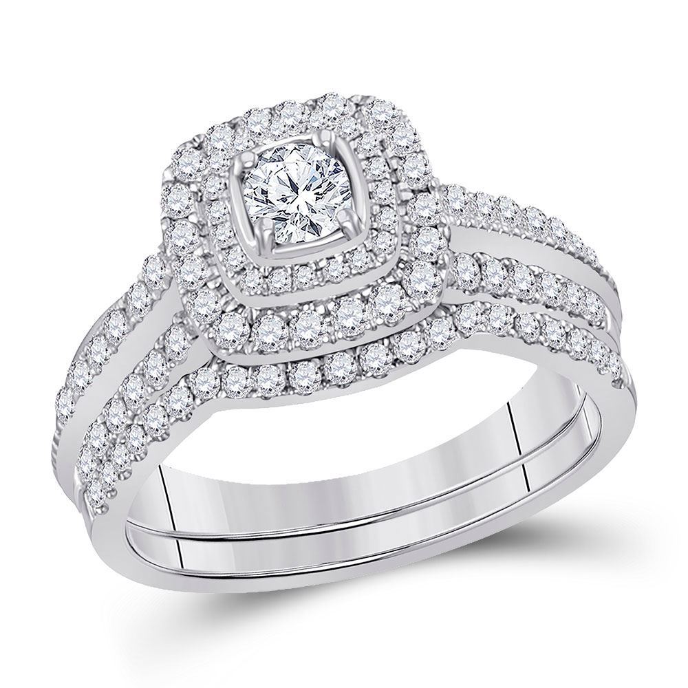 REF-104X9A ---- Round Diamond Bridal Wedding Ring Band Set 1 Cttw 14kt White Gold